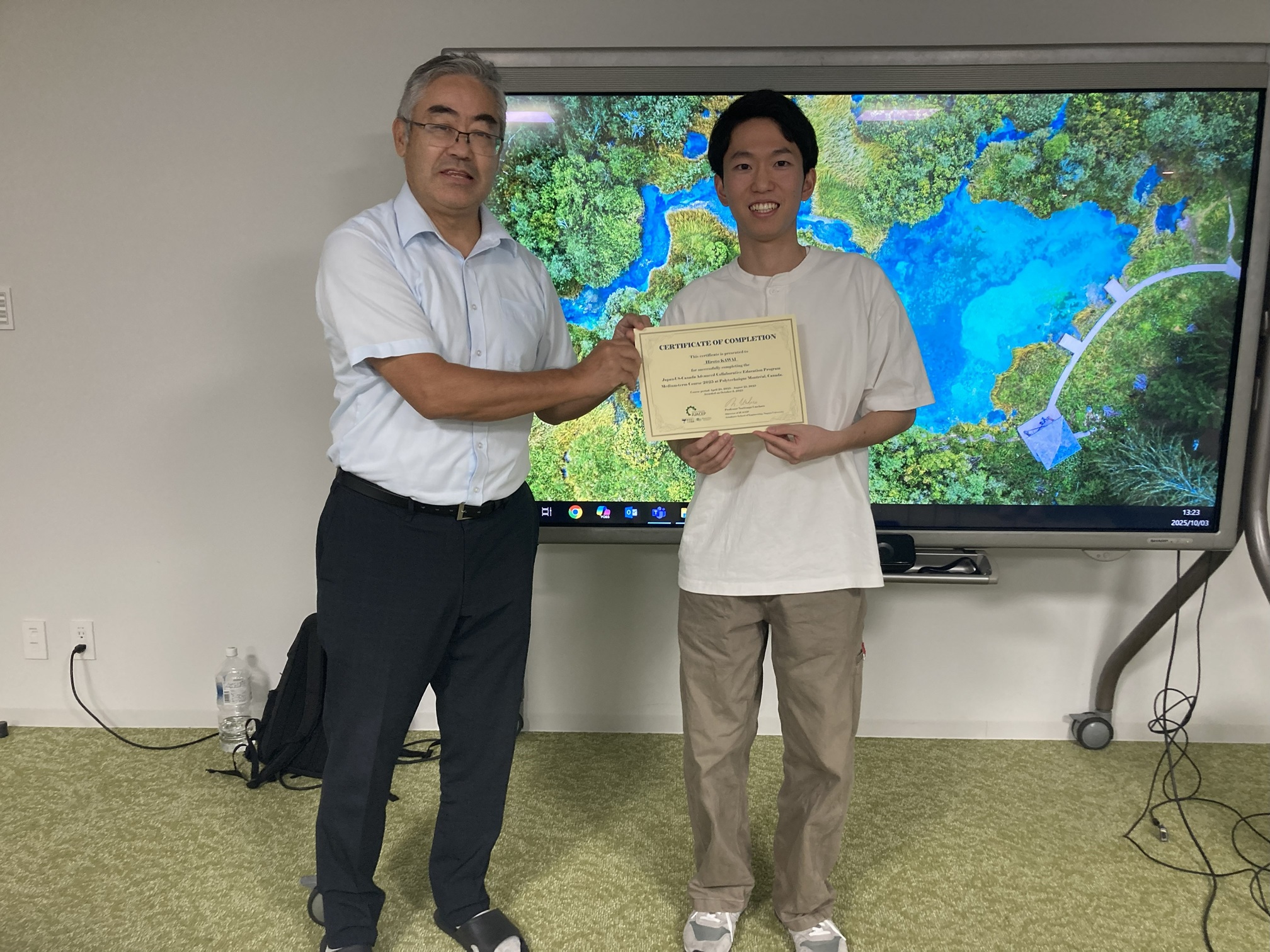 The 38th JUACEP Workshop was held on October 3rd for a Nagoya University student who experienced research internship at Polytechnique Montréal. Hiroto KAWAI began internships in April for 4 months with his own research theme.